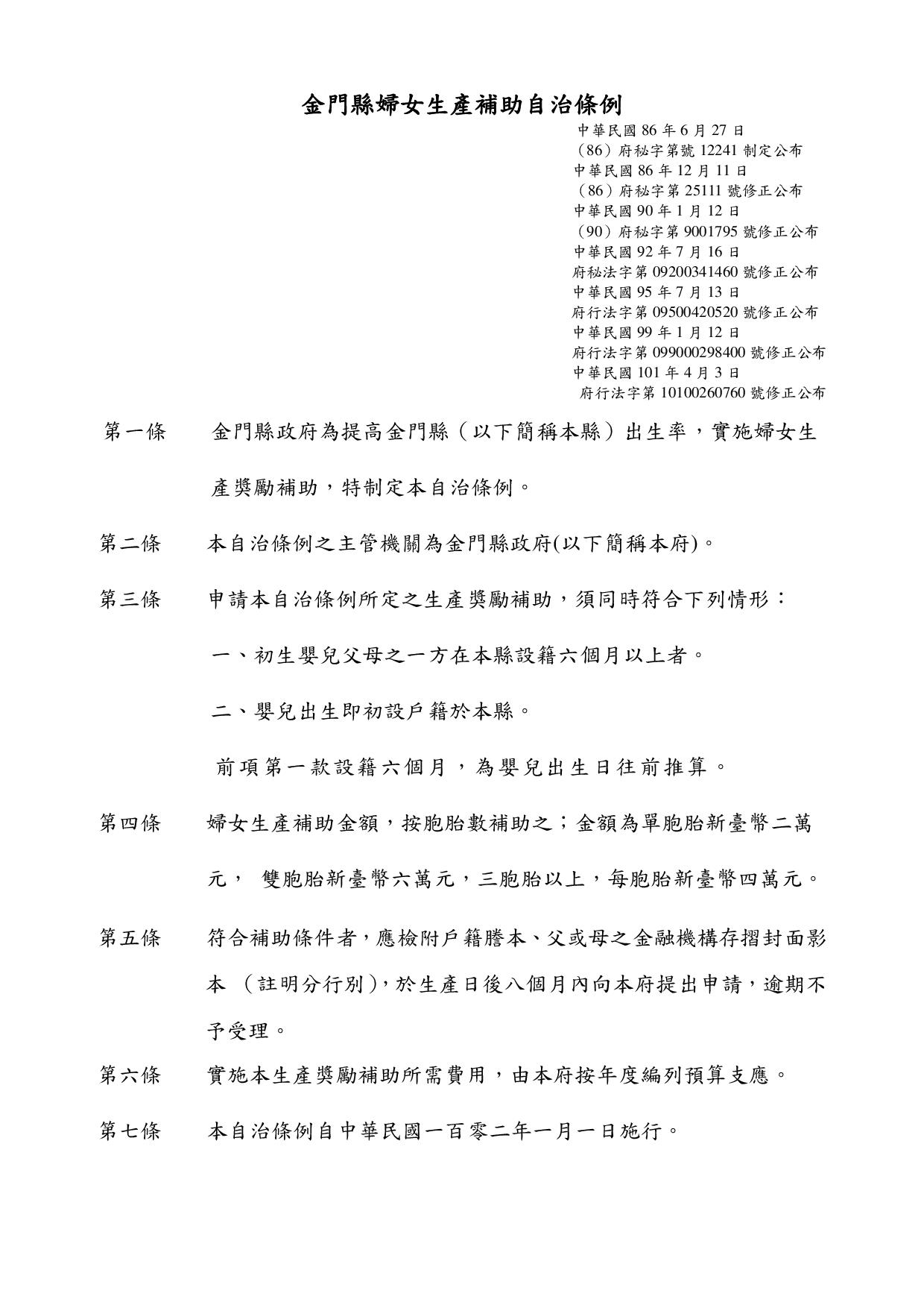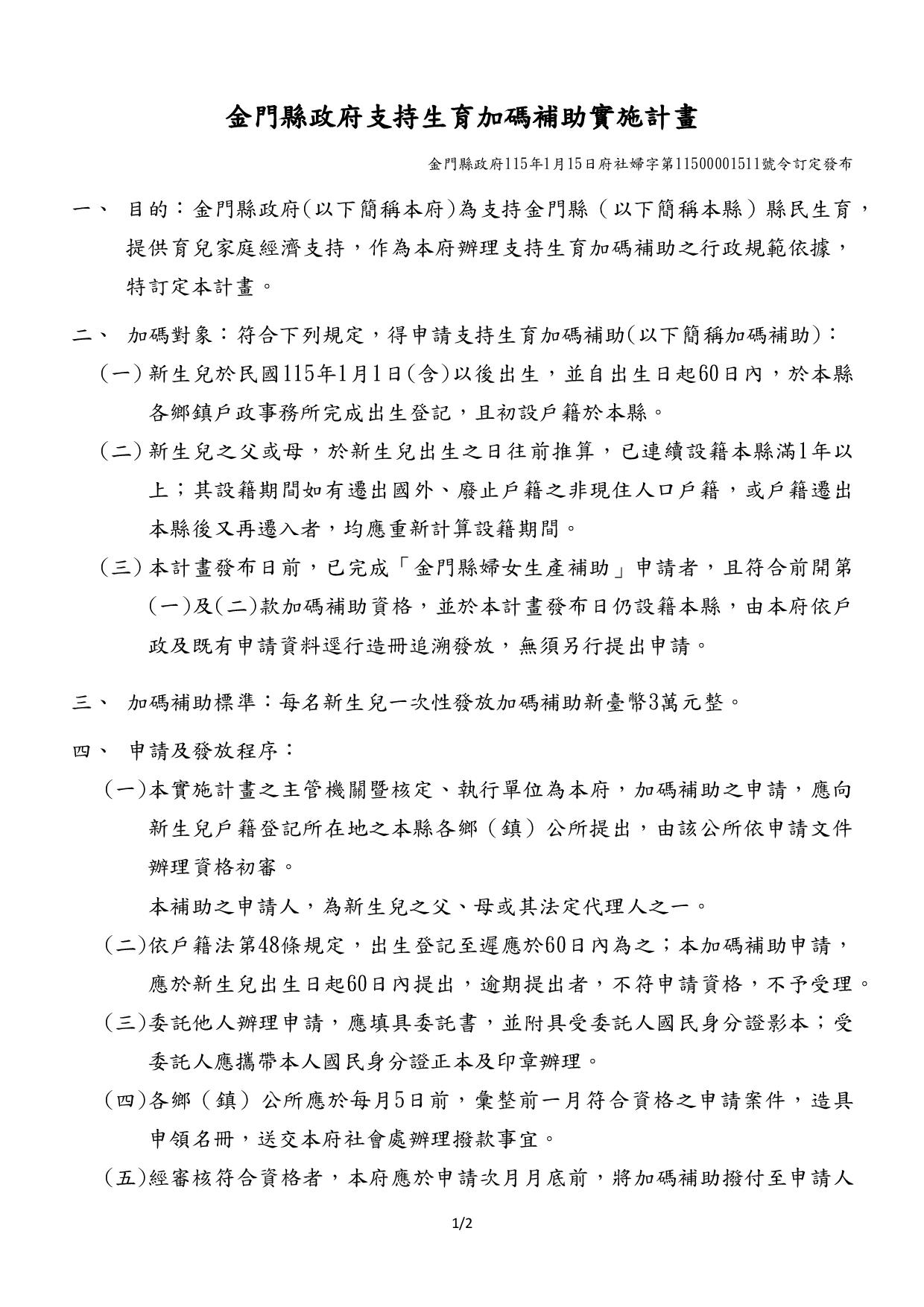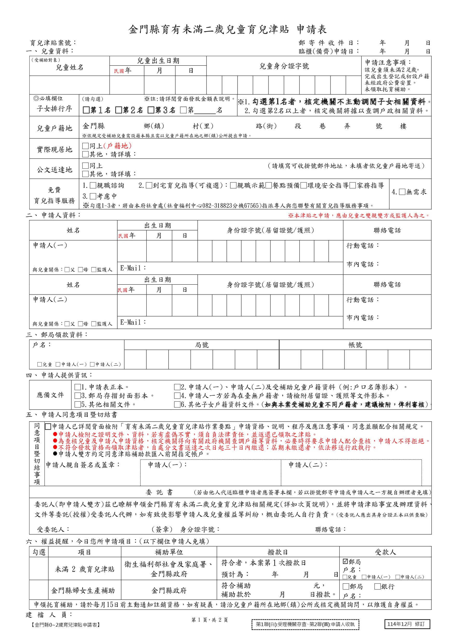 金門縣育有未滿2歲及2歲至未滿5歲兒童育兒津貼